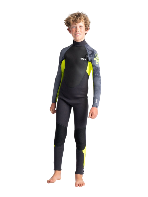 C-Skins Junior Element 3/2 Wetsuit - Anthracite/Yellow/Black Tie-Dye - JXS is backordered and will ship as soon as it is back in stock.