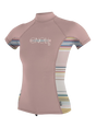 O'Neill Youth Premium Skins S/S Turtleneck Rash Vest - Peony/Baja Stripe/Peony