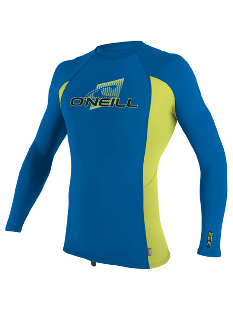 O'Neill Youth Premium Skins L/S Rash Vest - Ocean/Electric Blue/Lime