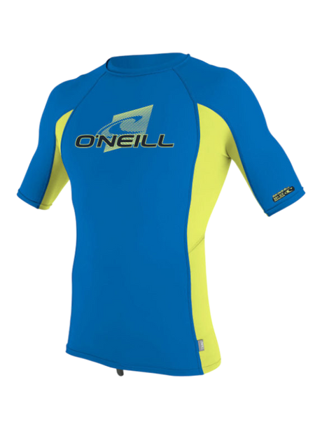 O'Neill Youth Premium Skins S/S Rash Vest - Ocean/Electric Blue/Lime