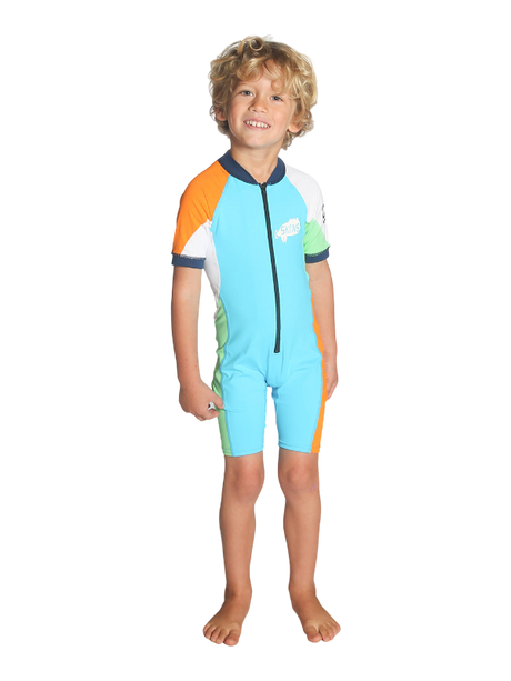 C-Skins Toddler UV Front Zip Shortie Sunsuit - Turquoise/Orange/Green