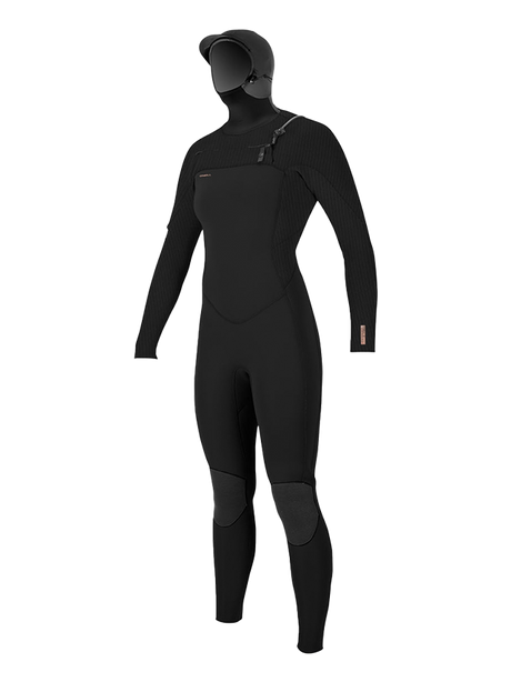 O'Neill Womens Hyperfreak 5/4+ Hooded Chest Zip Wetsuit - Black